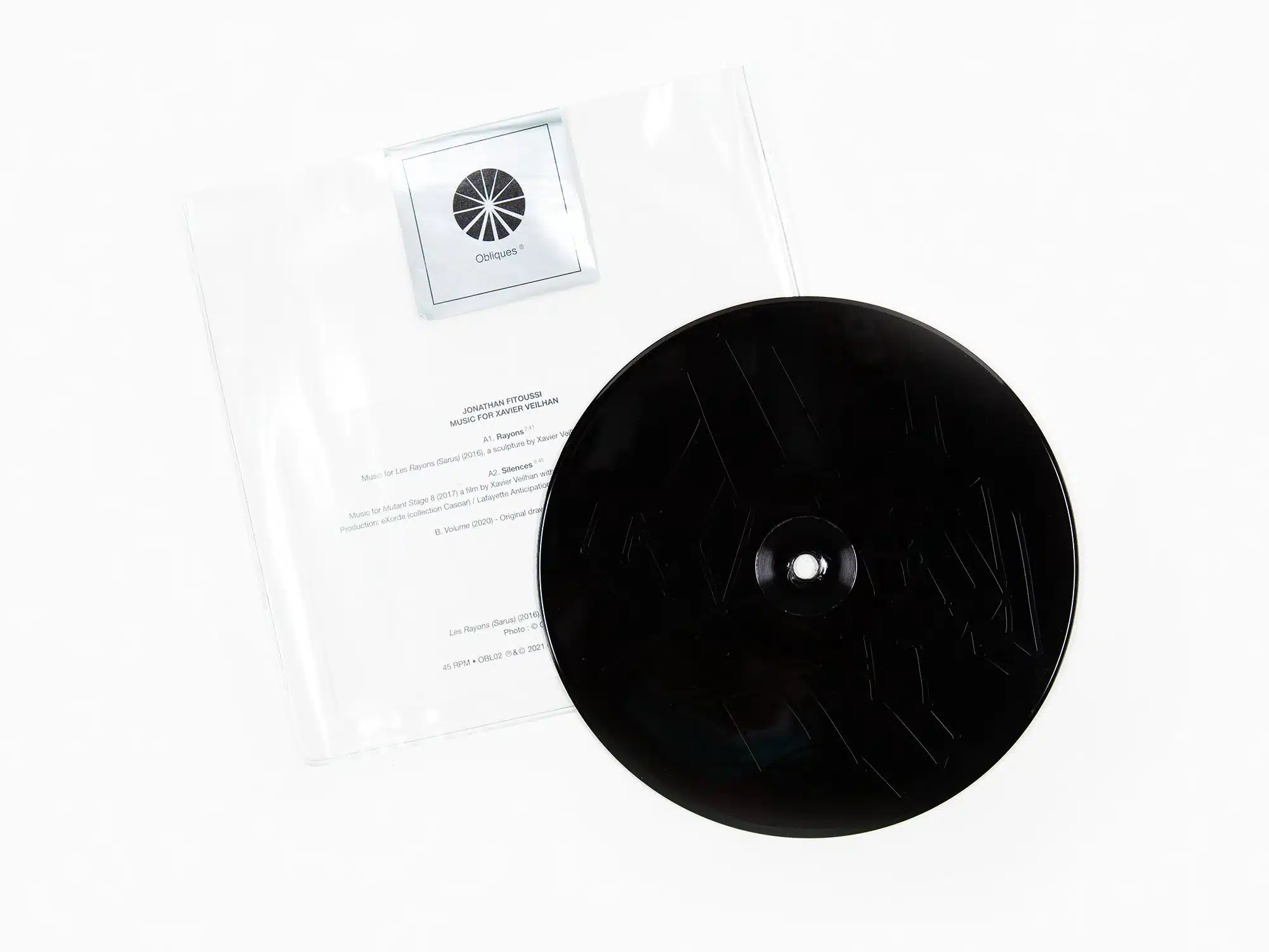 The album contains two compositions: « Rayons » illustrates the monumental installation by the same name in Sarus in the south of France and « Silences » that the musician composed for Mutant Stage 8, a film by X. Veilhan with Marie-Agnès Gillot and Dimitri Chamblas for Lafayette Anticipations.