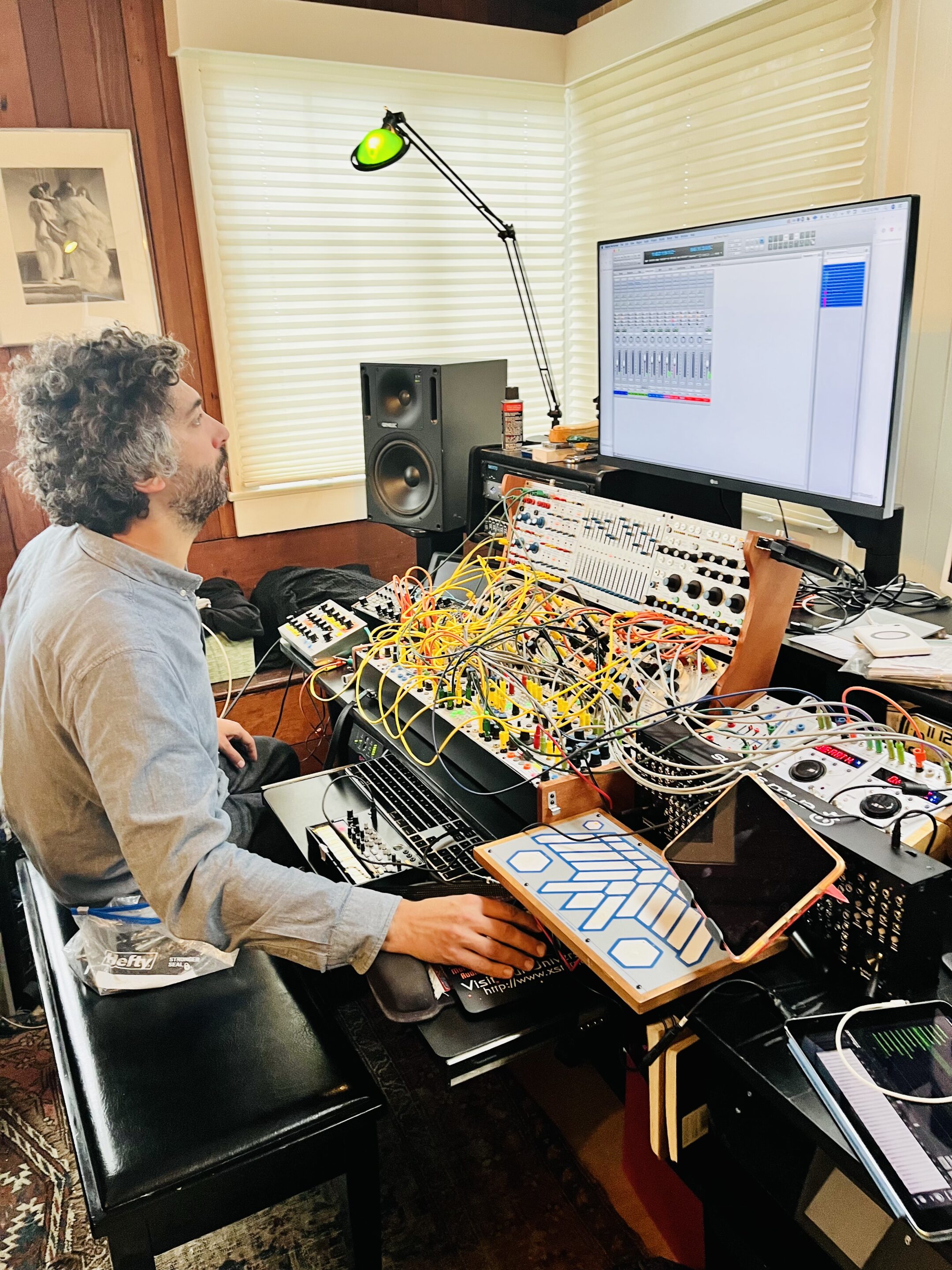 « In Suzanne’s house we worked on the rocking sound of the waves breaking on the shore, merging naturally with the white sound of the synthesizers. The power of the ocean constantly pervading the atmosphere in the studio communicates a real energy to the sounds that we created together, it is obvious. On top of that, we enjoyed long walks on the beach between our working sessions. » Jonathan